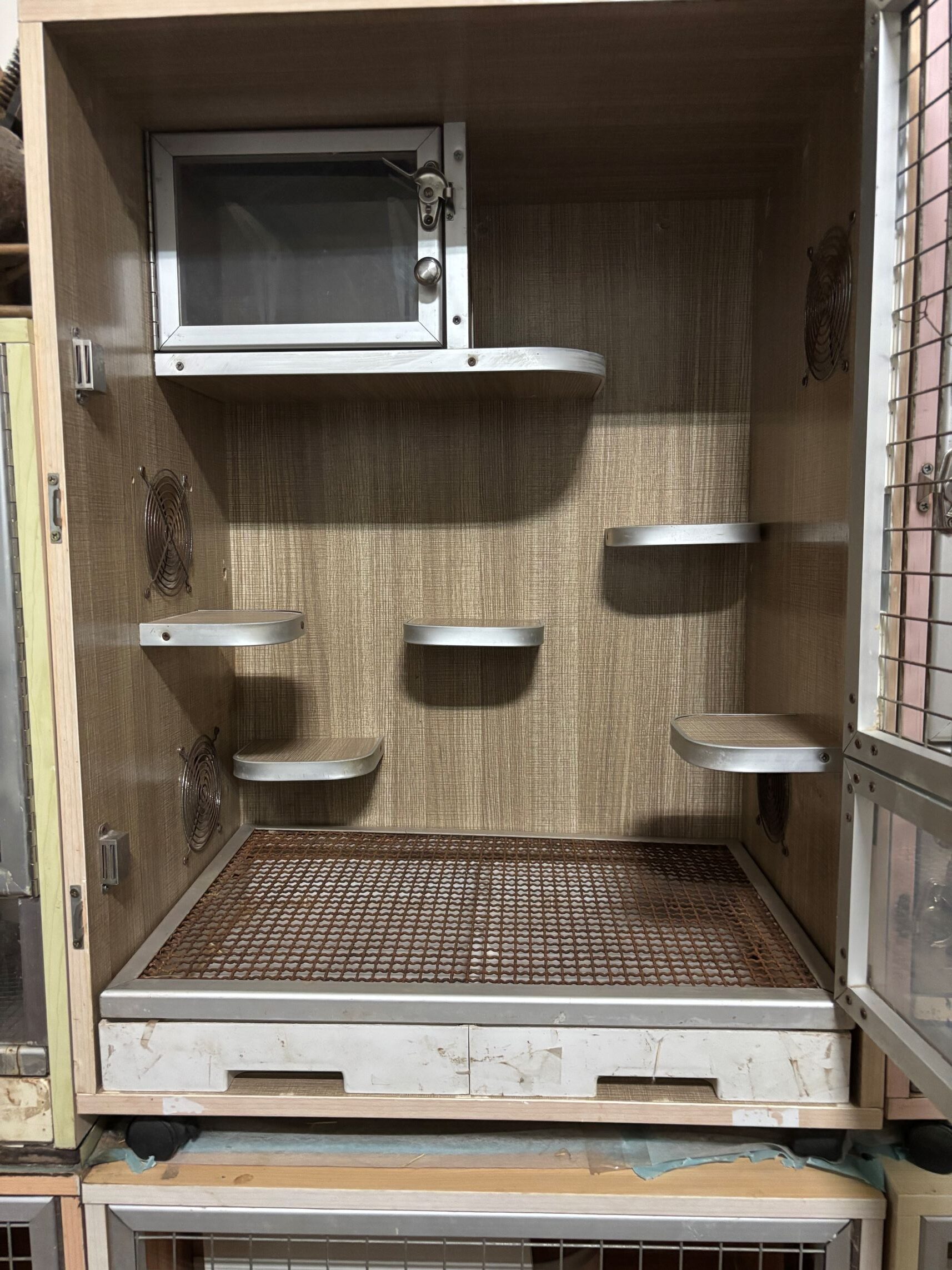 棲息屋、跳台、踏板、可拉出底盤、上大門及下小門皆可開,是個讓寵物很舒服、讓主人很好餵養清理的飼養箱。